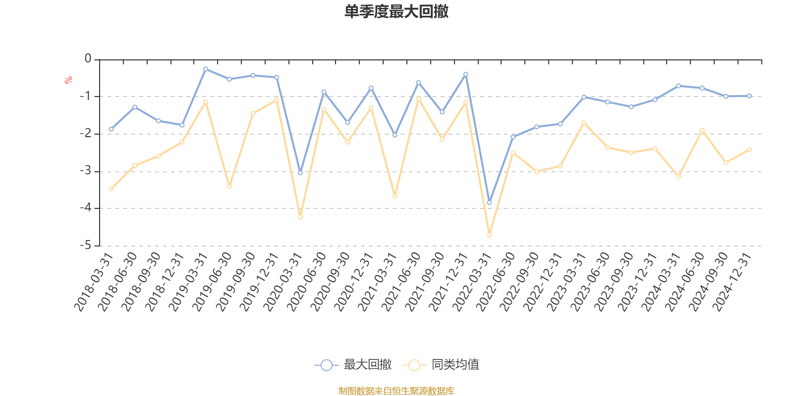 通过所选区间该基金净值增长率分位图,可以观察该基金与同类基金业绩比较情况。图为坐标原点到区间内某时点的净值增长率在同类基金中的分位数。