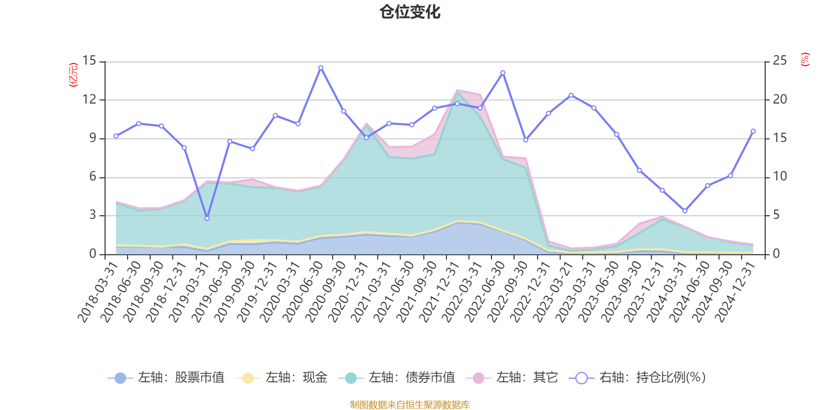 据定期报告数据统计,近三年平均股票仓位为15.9%,同类平均为18.74%。2020年上半年末基金达到24.2%的最高仓位,2019年一季度末最低,为4.67%。